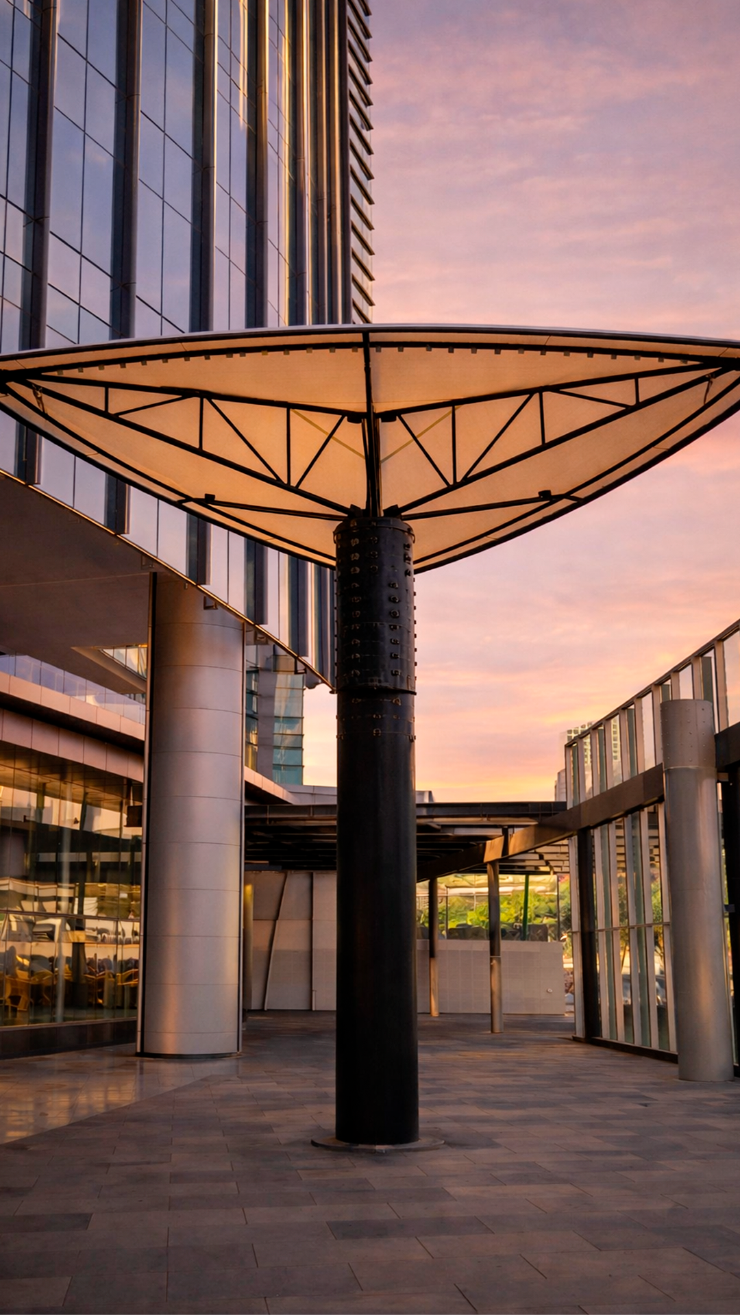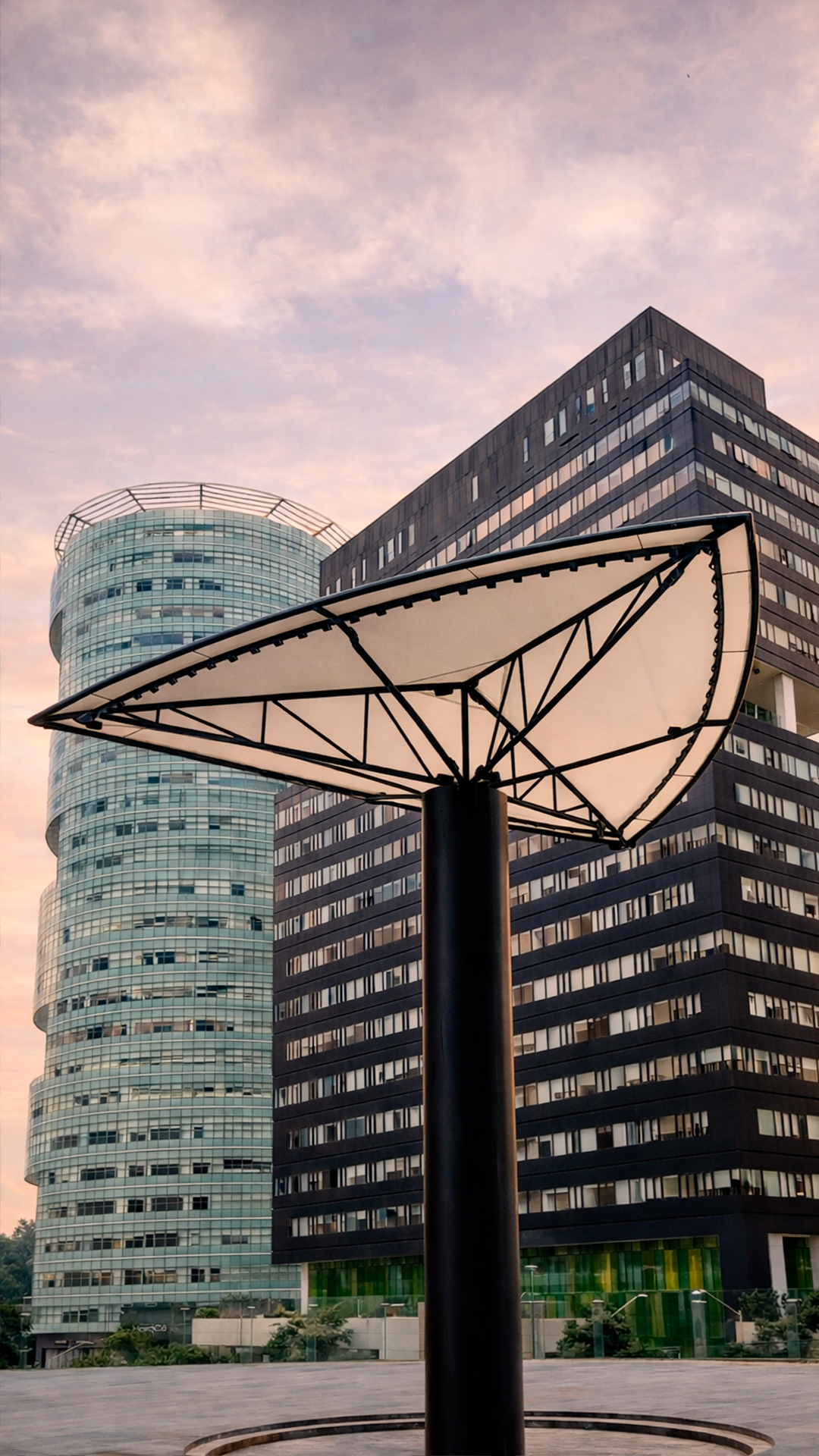 Estructura escultórica en zona corporativa