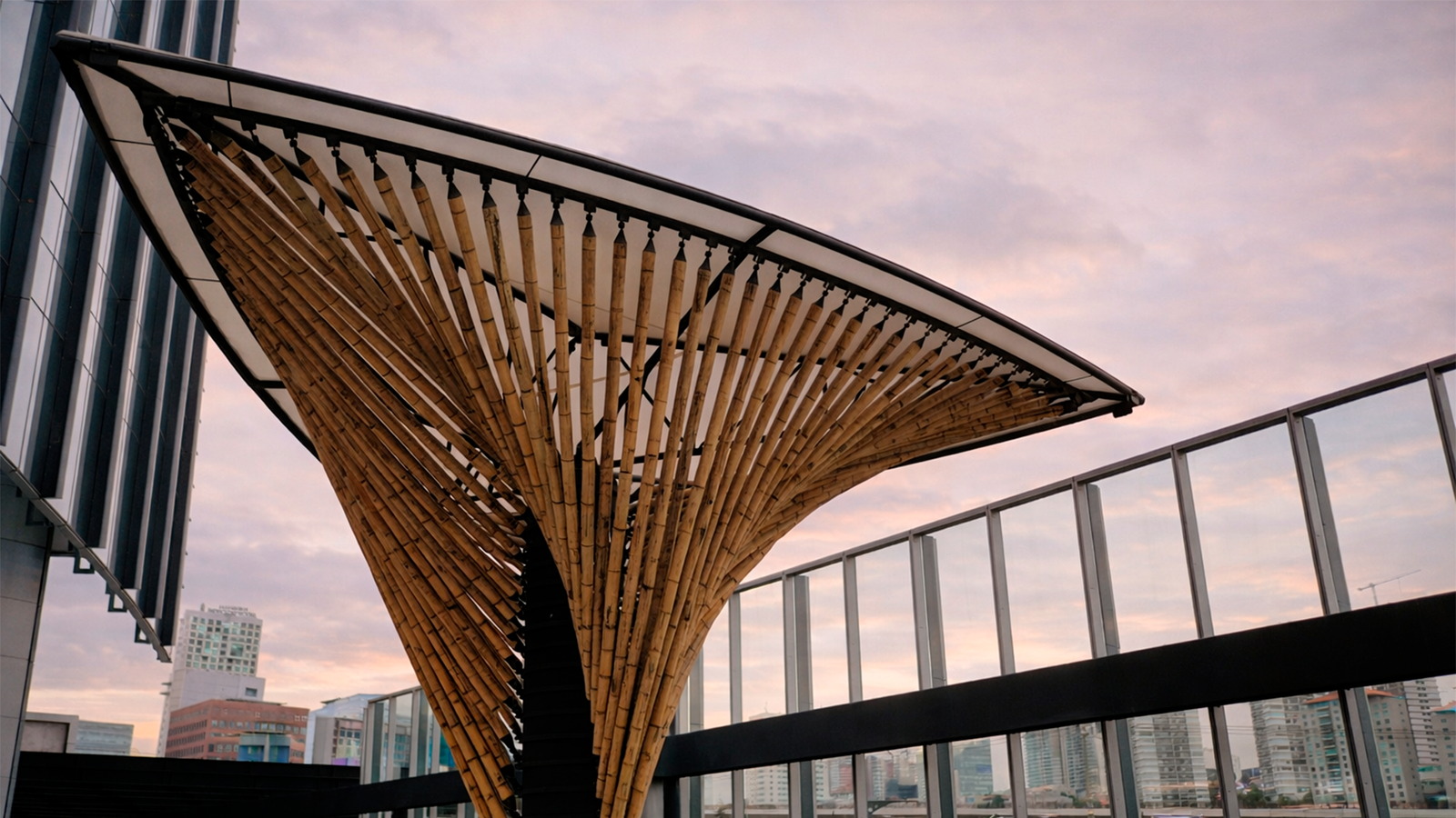 Proyecto híbrido que combina acero, bambú y textiles de alto desempeño.